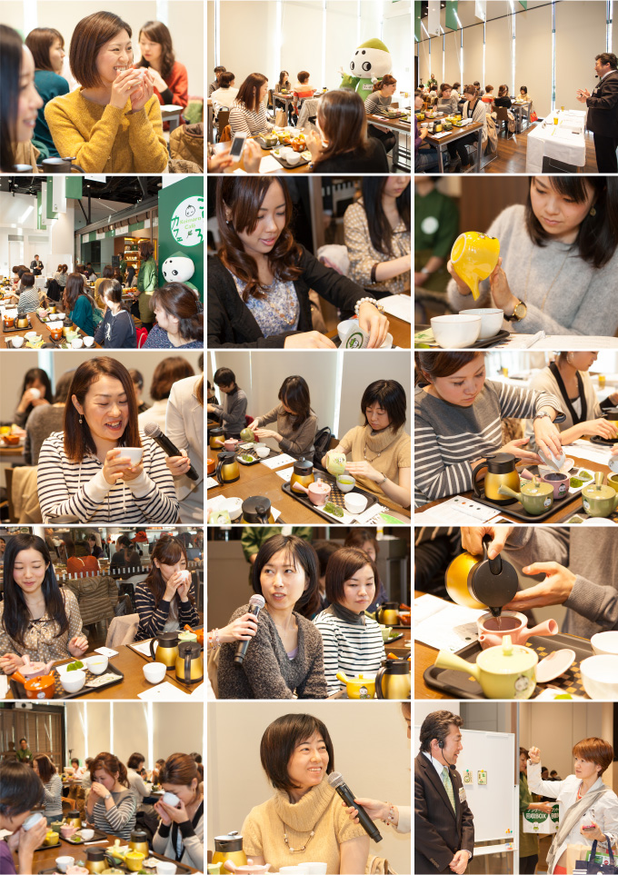 「日本茶ってむずかしそう」「お茶の淹れ方がわからない」、そうした理由でついつい敬遠しがちだったという女性にお茶の淹れ方講座を開催。来客時にも困らないスマートなお茶の淹れ方や、おもてなしの方法など、大人の女性に不可欠な美しい作法をはじめ、友人知人に披露したくなるようなちょっとしたお茶のうんちく話もお教えしました。